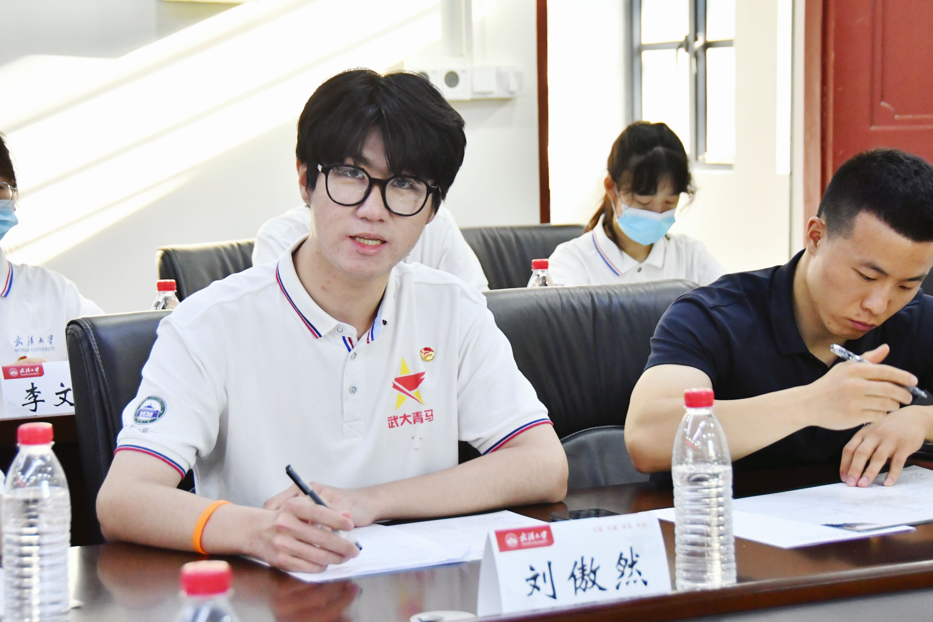湖北省学联主席、2021 级硕士生蔡展晖分享其参加“大学生志愿服务西部计划”的经历和心得,表示勇担时代重任,不负韶华努力进取。