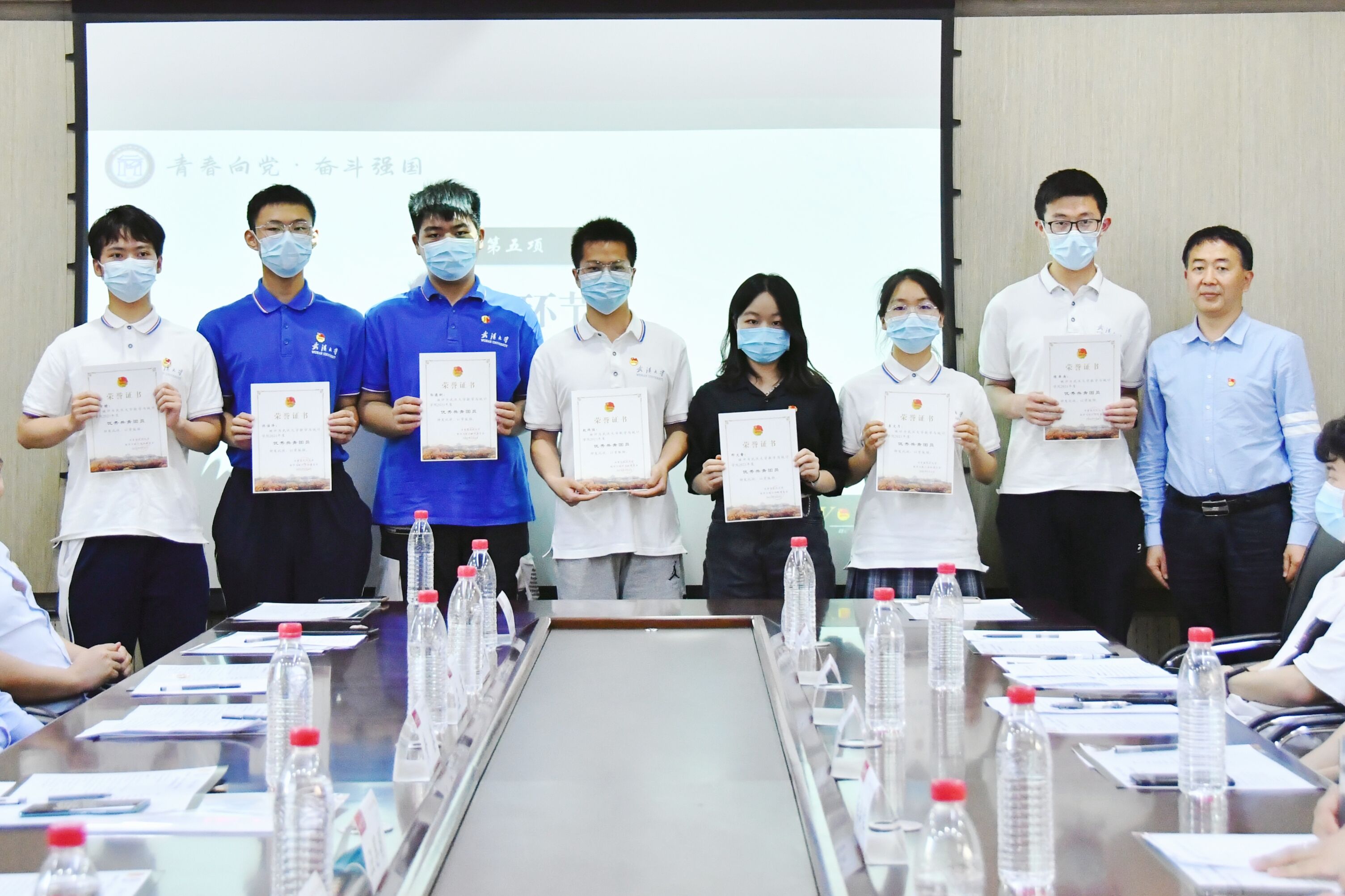 “先进团支部”“优秀共青团干部”“优秀共青团员”的通知》,表达了对获奖集体及个人的祝贺与希望。与会领导为先进集体及优秀个人颁发荣誉证书。