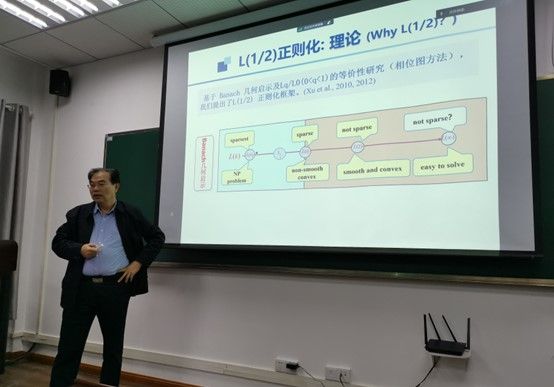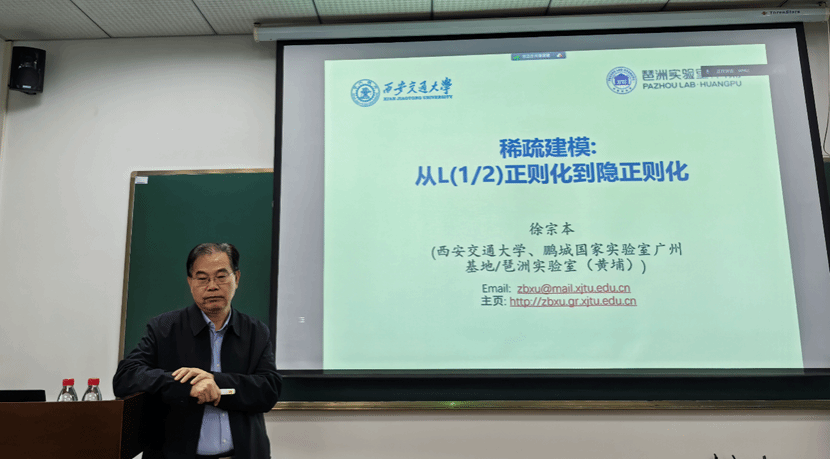 院士、西安交通大学徐宗本教授应邀在糖心视频讲学,作题为“稀疏建模:从L(1/2)正则化到隐正则化”的杰出学者讲座。在糖心视频讲学期间,校长张平文院士与徐宗本院士亲切会谈。
