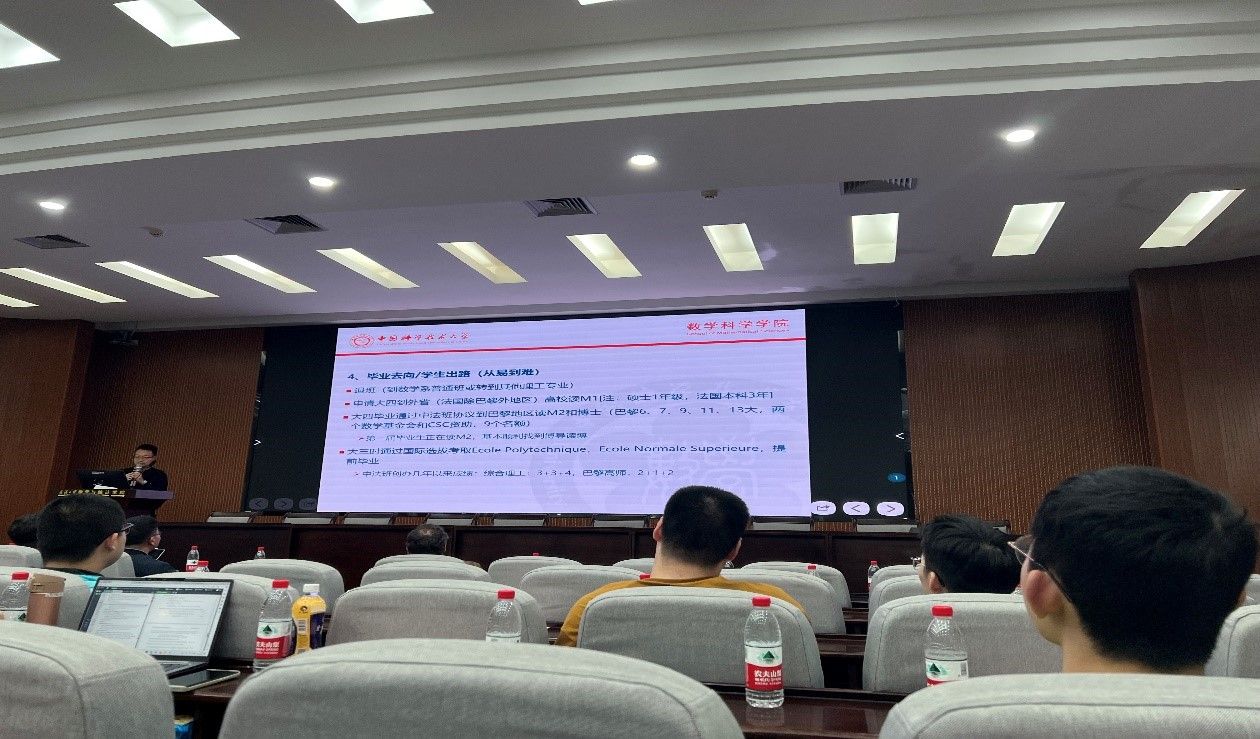 梁永祺教授介绍了中科大中法数学英才班创办背景、招生条件、教学课程设置、毕业去向等情况。巴黎西岱大学教授、中科大国际访问教授Loic Merel结合自身科研经历和英才班教学经验,分享他对中法数学英才班教学目标的设定和教学规划。