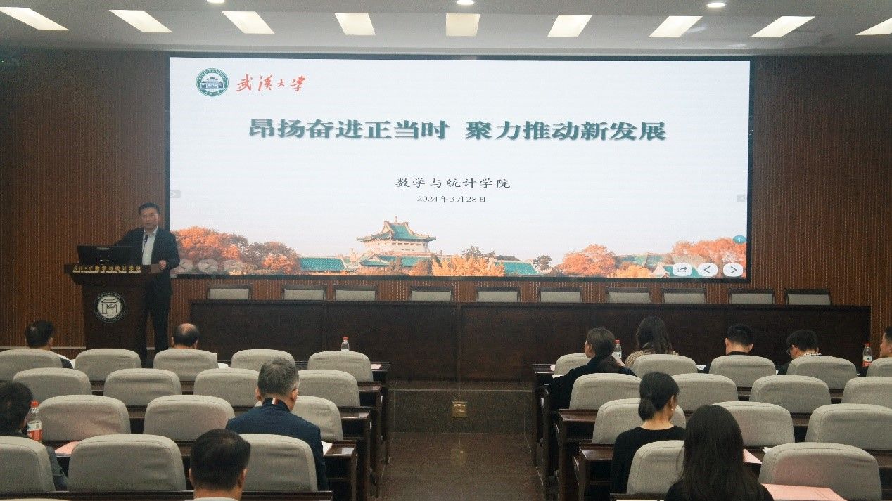 院党委书记左军代表院党政领导班子,以“昂扬奋进正当时,聚力推动新发展”为题,作2023年度工作总结和党建工作述职。他指出,去年是我校数学学科创建130周年华诞,具有里程碑意义。在学校坚强领导和社会各界支持下,院党政领导班子密切协同,团结依靠全院师生,传承弘扬砥砺奋进,主要体现在六个方面:加强班子建设,党建引领发展开创新局面;聚焦学科建设,师资队伍引育收获新进展;坚持守正创新,人才培养质量实现新提升;夯实立德树人,推进三全育人取得新成效;加强合作交流,举办百卅院庆激发新动能;强化作风建设,提升治理效能焕发新面貌。