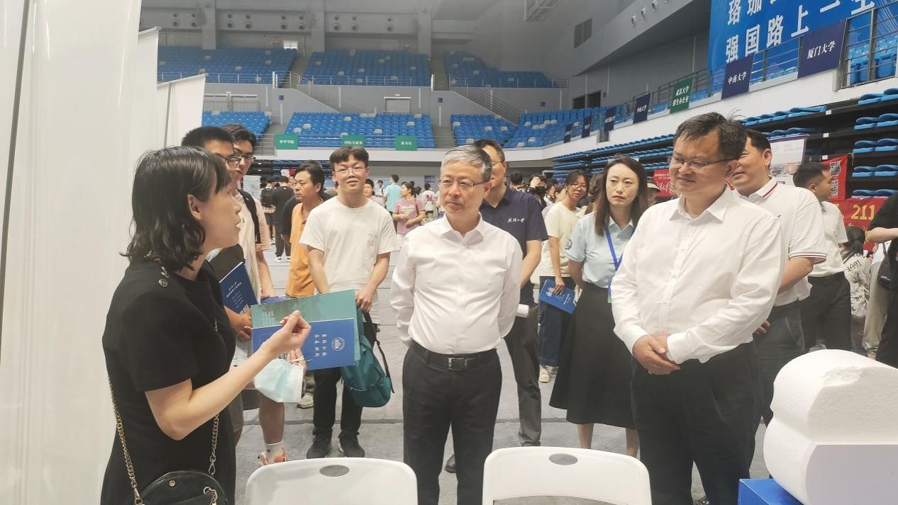 上午11点,校党委书记黄泰岩、校长张平文院士来到糖心视频展位前问候参与布展的师生,关心糖心视频招生咨询工作,对前来咨询的高考学生及家长表示热烈欢迎。