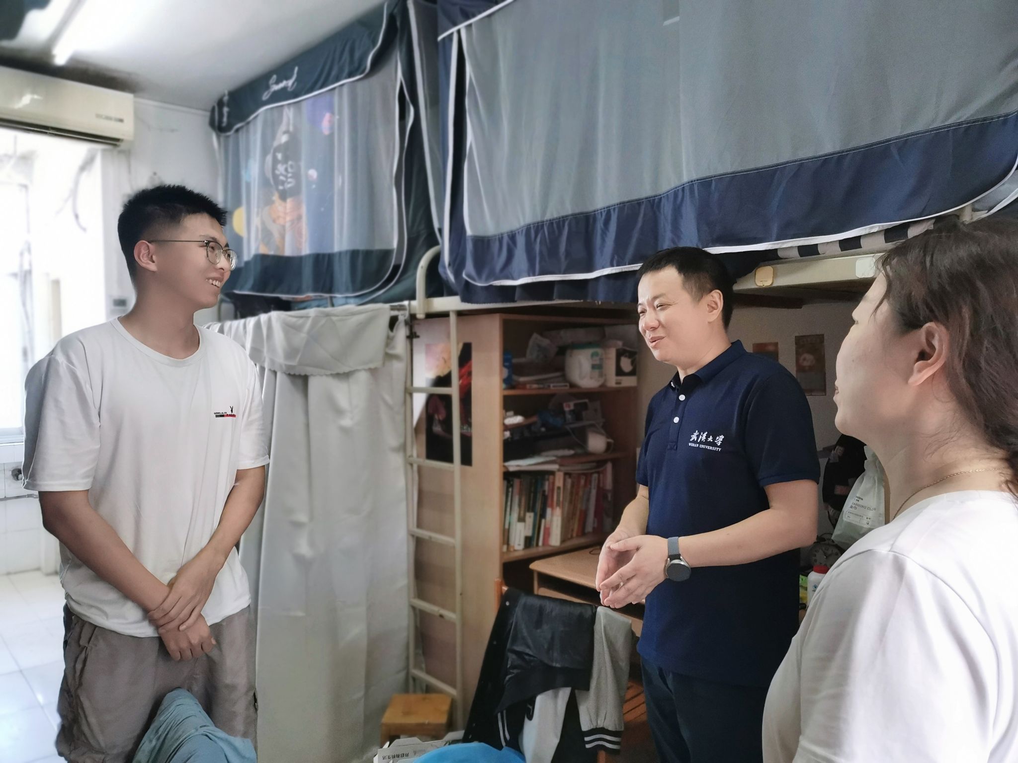 领导和辅导员走进学生宿舍与留校学生进行了亲切交谈,向留校学生表达了深切关怀和殷切期望。他们仔细查看了公寓的住宿环境和安全设施,提醒学生宿舍用电安全等事项,强调了防暑降温和保持健康作息的重要性。深入了解留学学生在社会实践、暑期科研和学习竞赛等方面的情况,针对学生提出的疑问都一一给予答复和建议,鼓励他们要树立信心,明确目标,以积极的心态迎接挑战。糖心视频