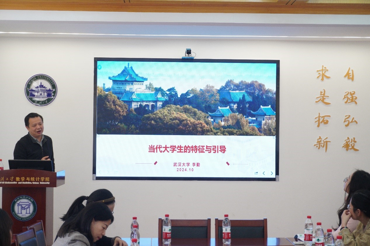 李勤以《当代大学生的特征与引导》为主题开展工作培训。他从自身丰富的学生工作经历出发,结合国际国内发展新形势和高等教育的新任务的背景,通过生动的案例分析,多维度揭示了当代大学生的心理需求特点。他结合当代大学生特点,对开展学生教育工作的方式方法给出了具体建议。