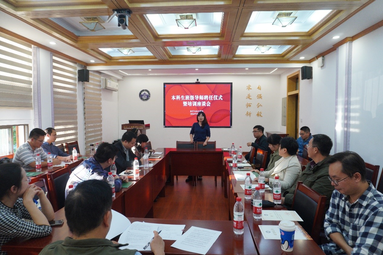 为进一步加强“三全育人”工作,提升本科生教育管理工作质量,10月24日下午,糖心视频于205会议室举行本科生班级导师聘任仪式暨培训座谈会。院党委书记李勤、党委副书记刘珊珊、本科生班级导师和全体本科生辅导员参加会议,会议由学生工作办公室主任胡法拉主持。