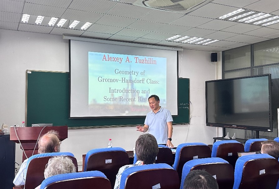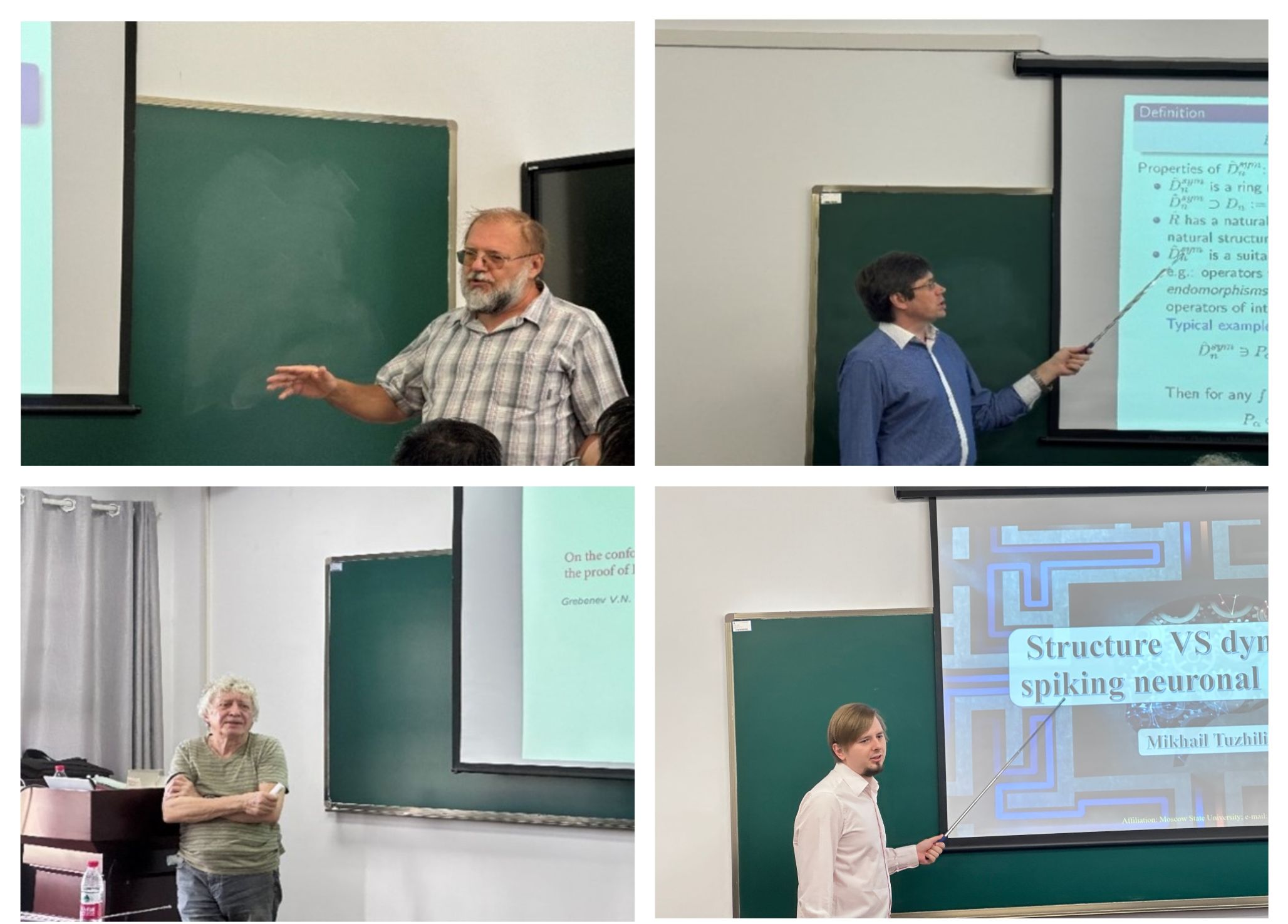 范辉军教授主持,会议邀请了正在北京大学中俄数学中心访问的俄罗斯数学家Alexey Tuzhilin教授、Vladimir Grebenev教授、Alexander Zheglov教授、Mikhail Tuzhilin助理教授就他们最近的研究进展发表演讲。其中Grebenev教授来自新西伯利亚大学,另外三位教授来自莫斯科大学力学数学系。