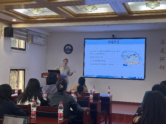 针对焦虑症、强迫症等大学生常见的心理疾病,戈瑶耐心地教会大家如何识别和应对。戈瑶还介绍了精神分裂症,这是自杀率最高的心理疾病。面对精神分裂症,辅导员需采取专人看管、联系家长、及时送医等手段主动干预。最后,戈瑶向大家澄清了对精神疾病的部分误解,并提倡要以积极的心态应对各类心理疾病。