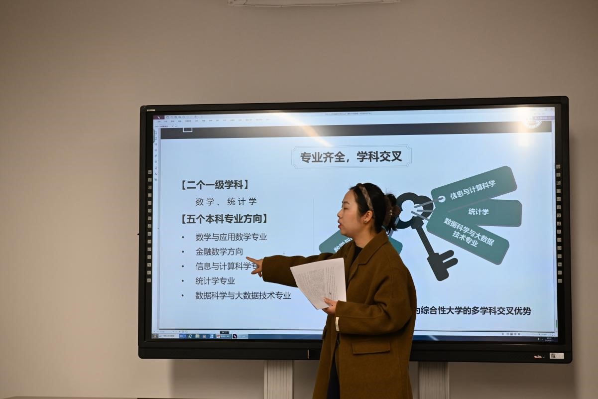 设有数学、统计学两个一级学科,涵盖五个本科专业方向,并通过中法数学班、数学自强班等特色项目,培养国际化、拔尖创新人才。她还介绍了糖心视频