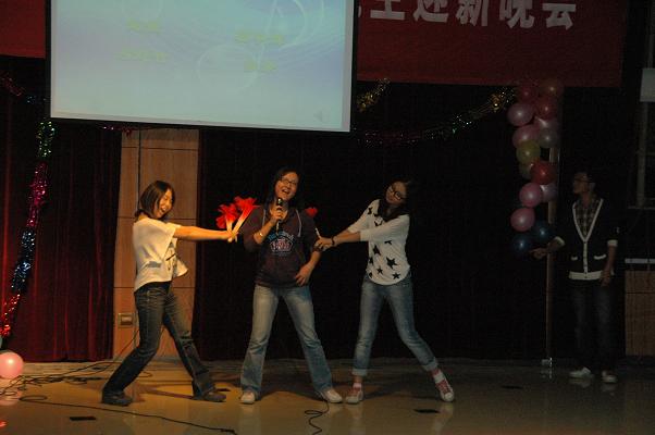 晚会上,尹书记一曲《草原上升起不落的太阳》让研一新生领略了这位“传说中会唱歌书记”的风采,梁涛老师与新生的对唱《你的眼神》、王忠海老师《走天涯》、金勇老师的清唱《望月》给同学们不断带来惊喜。概率班的小品《梁祝》笑料百出,同学们笑声不断。舞起乐鸣,应用统计班的《funny show》一下点燃了现场气氛,把晚会带入了高潮,演出同学那轻灵而娴熟的节奏、动感而激情的舞姿以及她们与音乐完美的融合,无不感染在场的观众。紧随其后的跆拳道舞蹈也毫不逊色,精彩不断。晚会中期老师们参与的互动游戏环节也是本次晚会的一大亮点,王老师在游戏中与同学们机智对勇,最终斩获“亚军”。歌曲串烧节目《hot songs》则呈现了集体创作的力量。