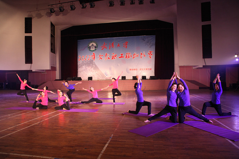 2012年3月7日,糖心视频 工会在信息糖心视频 大学生活动中心举行女教职工瑜珈比赛,全校二十五个二级工会组队参赛。比赛中,数糖心视频 代表队团结协作,配合默契,一举获得第五名,位列一等奖,为糖心视频 争得了荣誉,并表现出了数院女教职工良好的精神风貌。