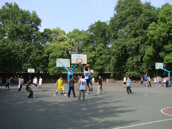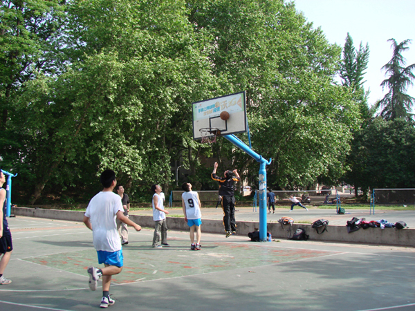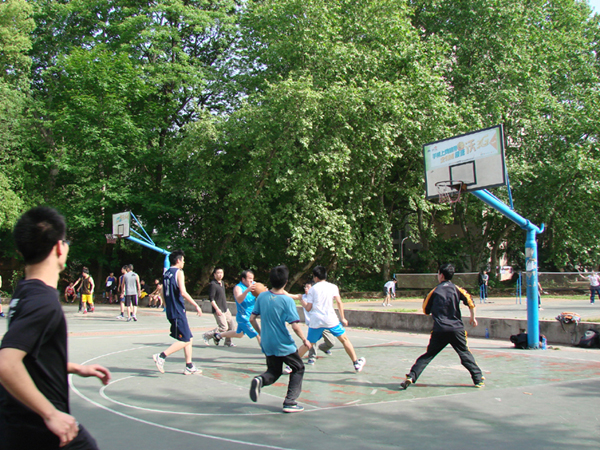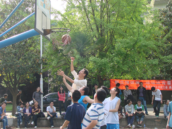 热爱篮球活动的老师与同学们进行了一次技术交流,同时也吸引了不少老师和同学前来加油助威。