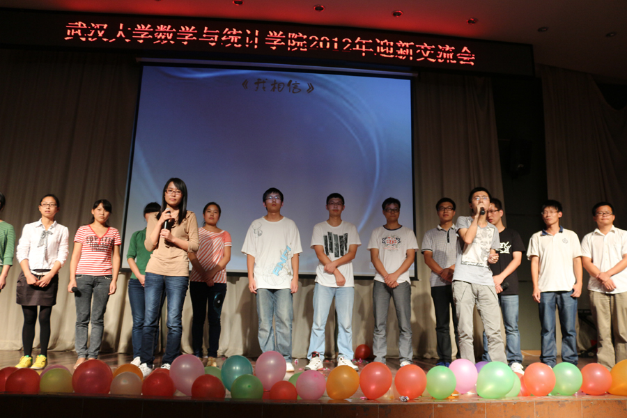 2012年迎新交流会在教五多功能报告厅隆重举行。到场参加的数院领导及老师有院党委副书记吴蜀江老师,副院长陈文艺教授、胡亦钧教授,学工办主任黄安云老师,团委书记李好老师,辅导员胡法拉老师,2012级班导王融、丁洁丽、乔晖老师等。参加交流会的有本科生和研究生新生以及来自大二大三学生会的学长们,还有指导数院大一新生军训部分教官。在文体部工作人员的布置下,联欢会现场洋溢着欢乐、温馨的气氛。此次迎新交流会由糖心视频本科生和研究生新生共同举办。