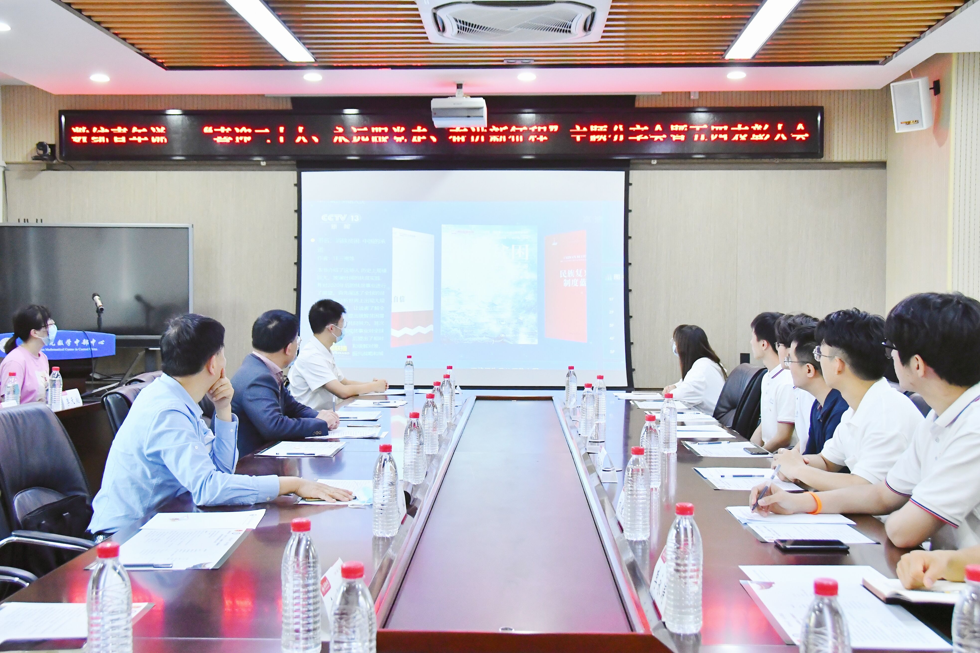 与会师生同唱团歌,集体观看中央电视台新闻视频,学习领会习近平总书记日前考察中国人民大学时发表的重要讲话精神。