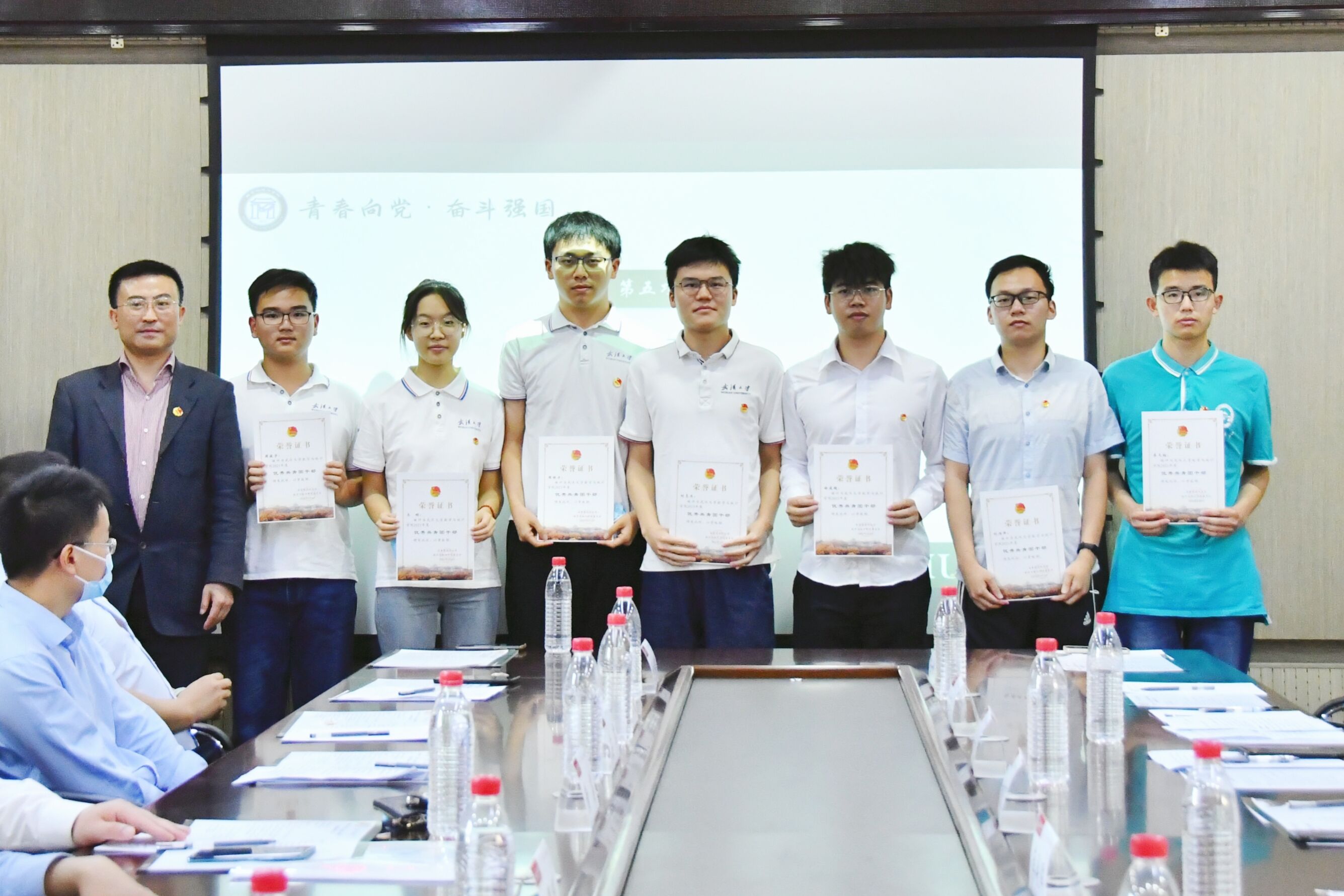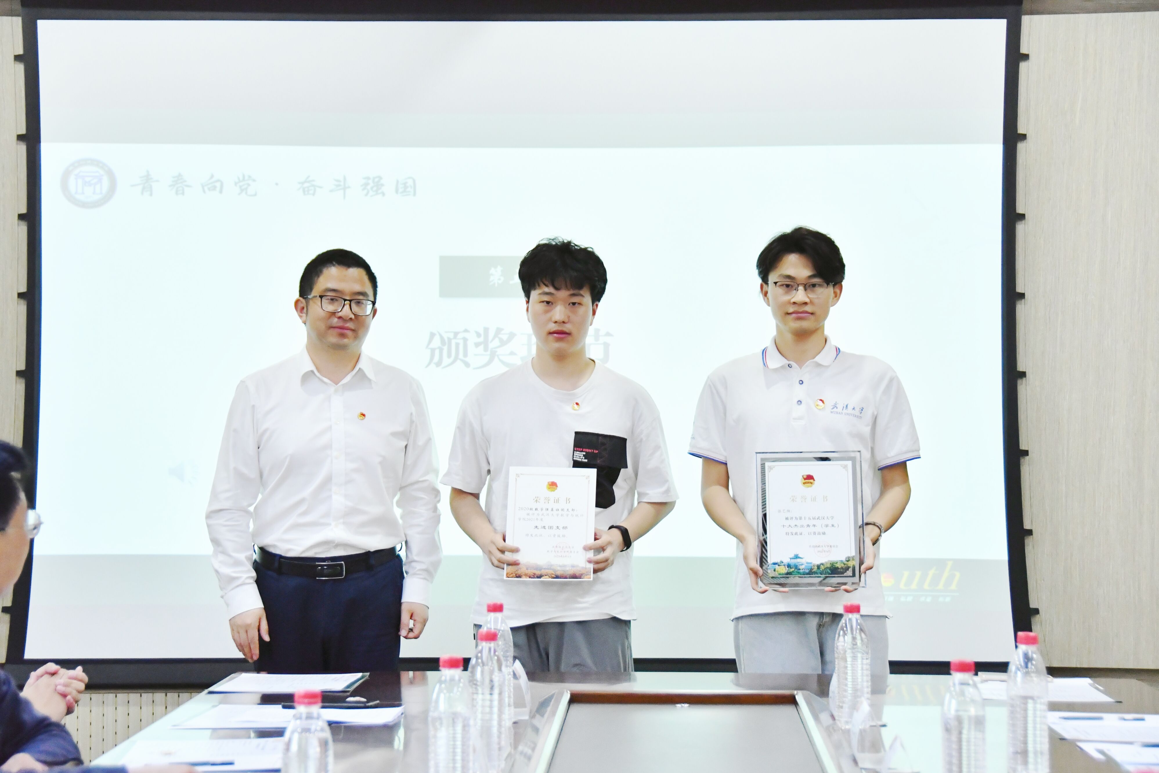 “先进团支部”“优秀共青团干部”“优秀共青团员”的通知》,表达了对获奖集体及个人的祝贺与希望。与会领导为先进集体及优秀个人颁发荣誉证书。