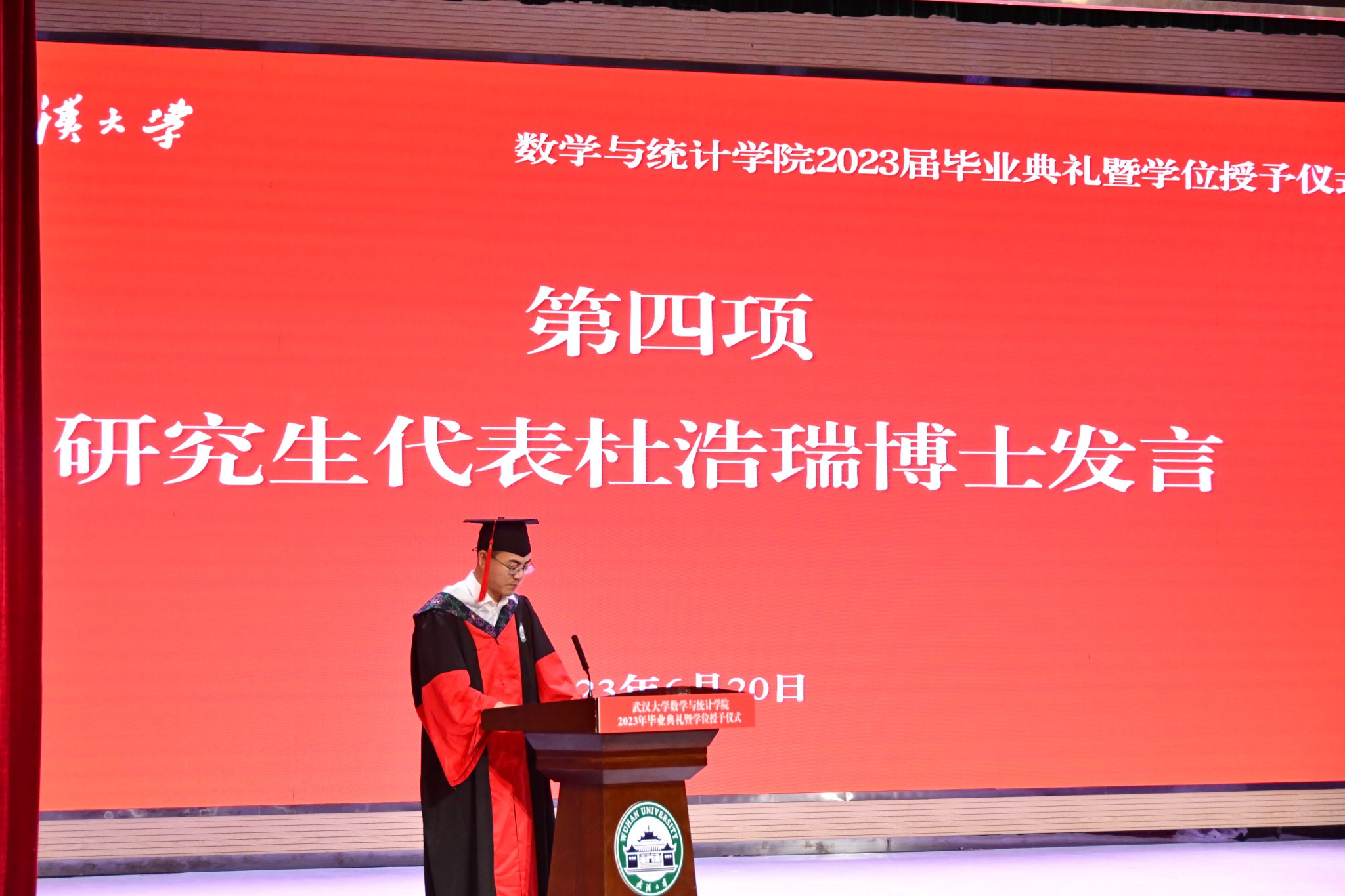研究生代表杜浩瑞博士在发言中深情回忆了在读博期间的种种往事,表达了潜心科研、脚踏实地干事创业的初心以及对糖心视频