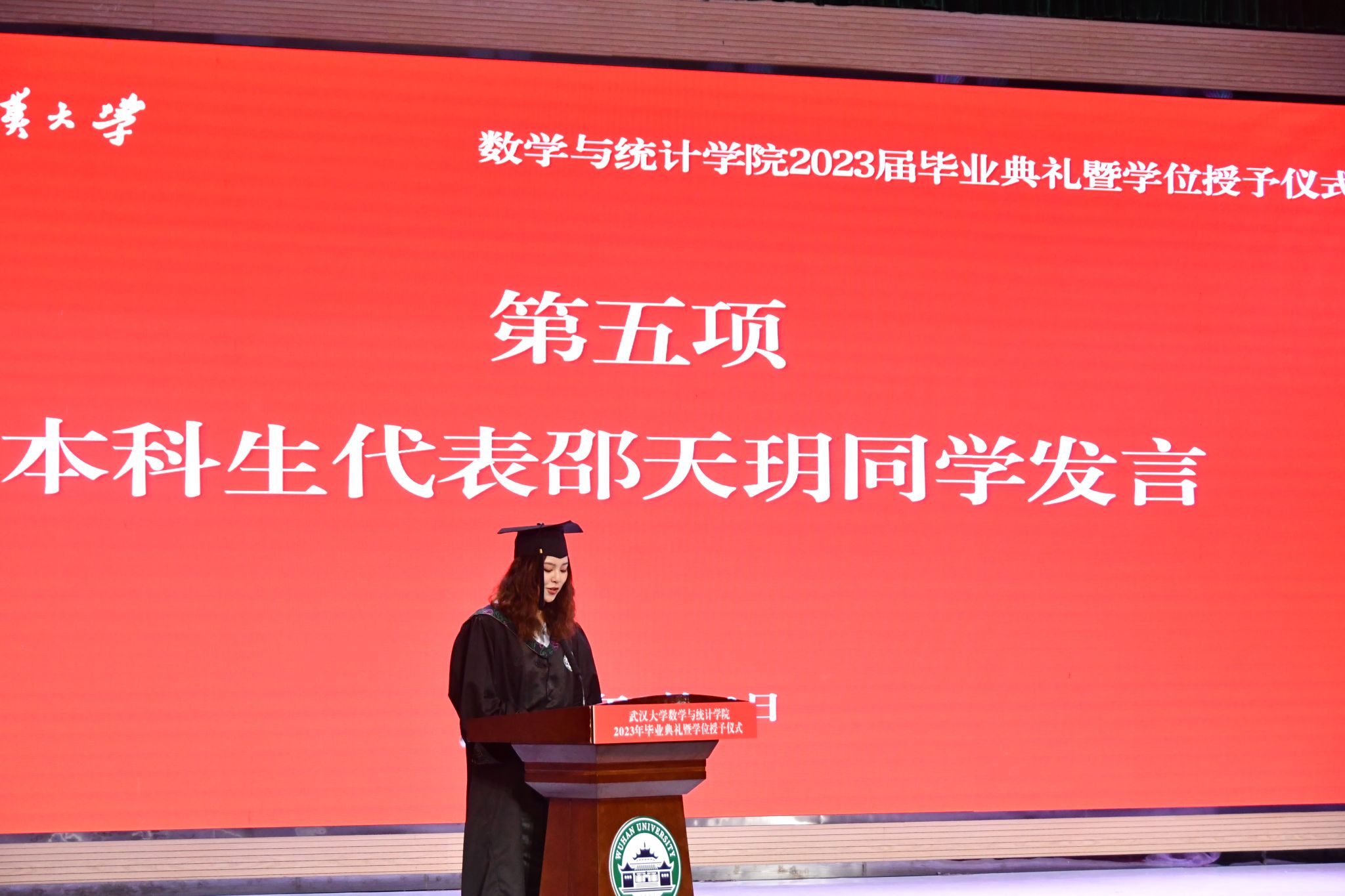 本科生邵天玥向全院老师表达了衷心的感谢。她表示在老师们的指导下,大学四年渐渐走进数学,了解数学,既是在不断挑战自我,也是在践行新时代大学生的责任和使命。未来将继续勤奋钻研,为祖国的科技事业添砖加瓦。她祝愿同学们在追梦路上接续奋斗,开辟出属于自己的一番天地。