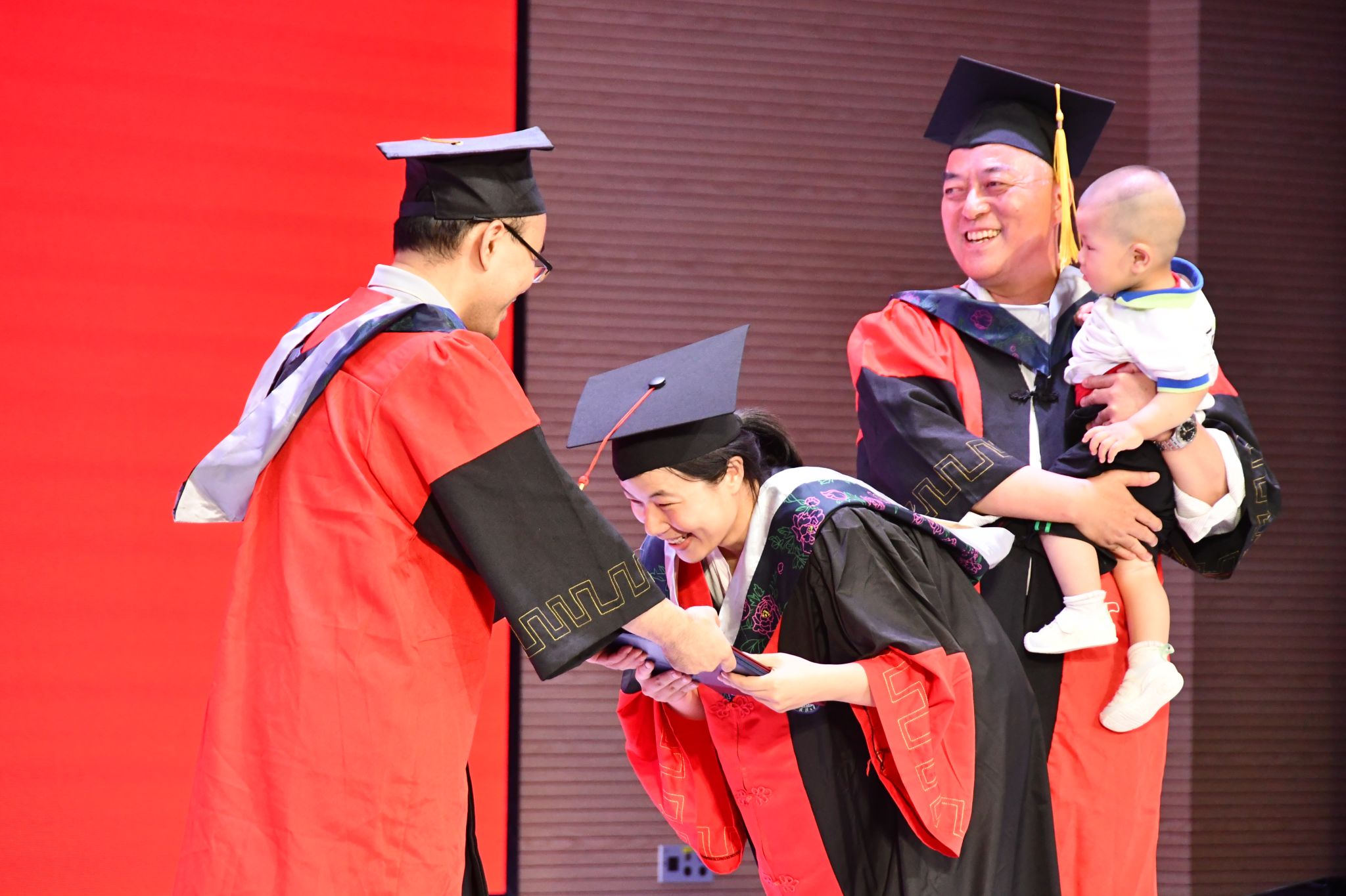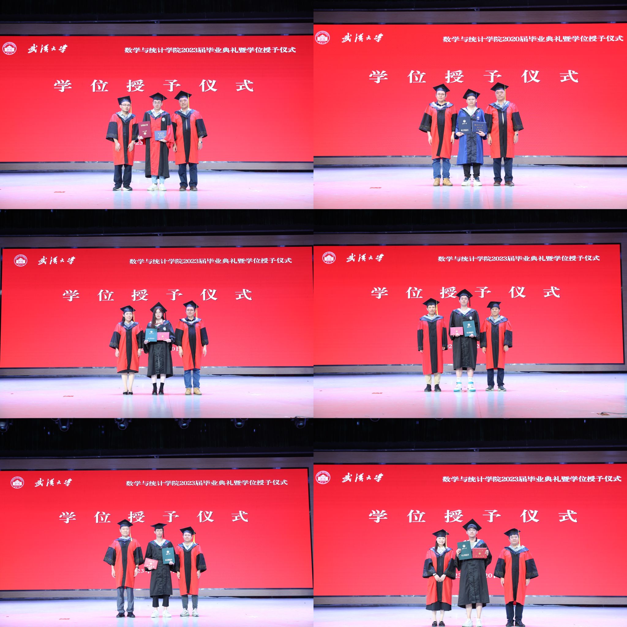 庄严的学位授予仪式随后拉开。赵会江、缪爽、陈群、李维喜、王茂发、吴晓群、张继伟、黄正华、刘伟、雷玲先后为所有2023届毕业生以及部分2020届毕业生逐一拨穗正冠、颁发学位证和毕业证并合影留念。