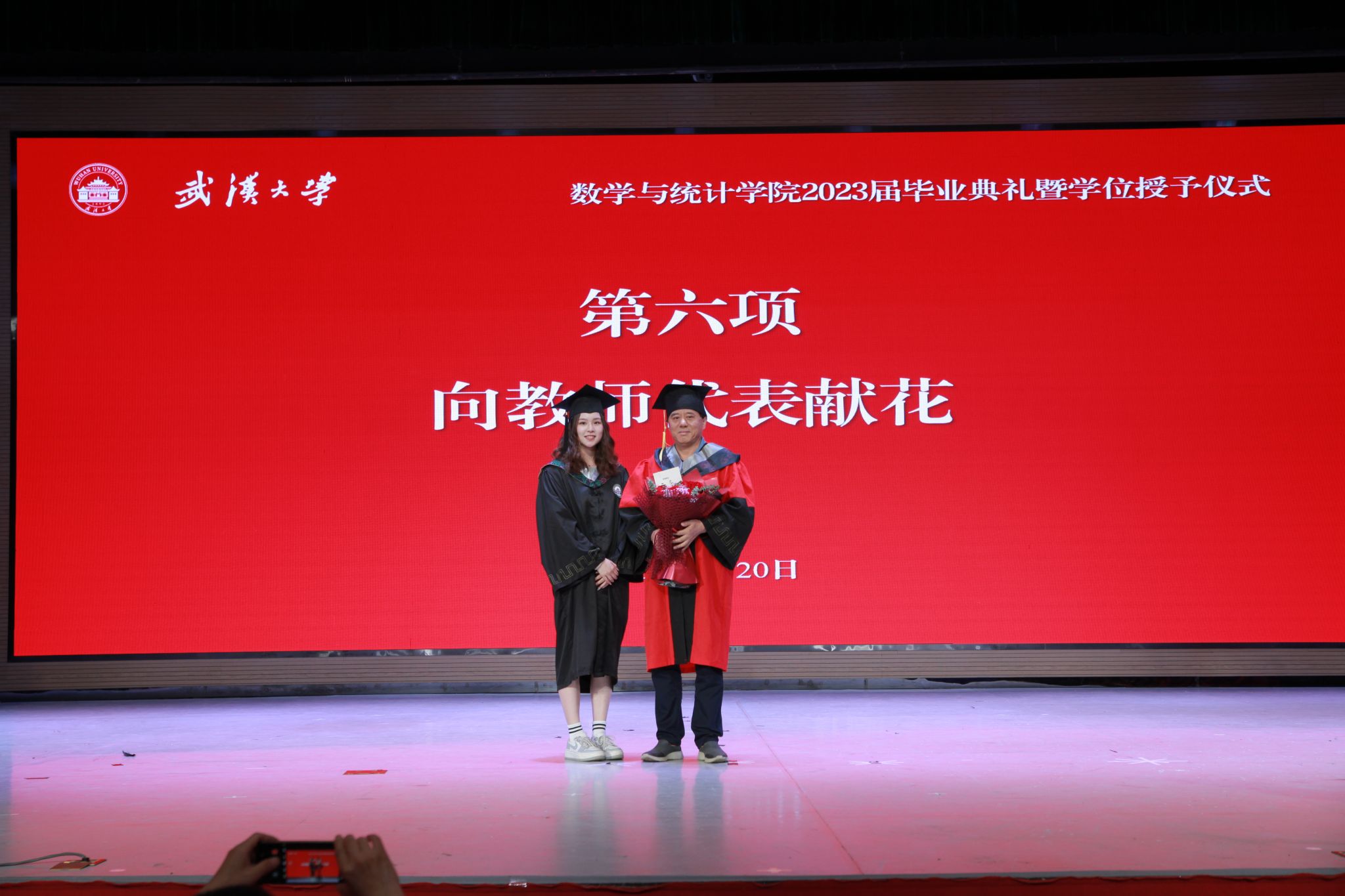 邵天玥代表毕业生向教师代表陈群教授献花,表达了对老师们辛勤栽培的崇高敬意。