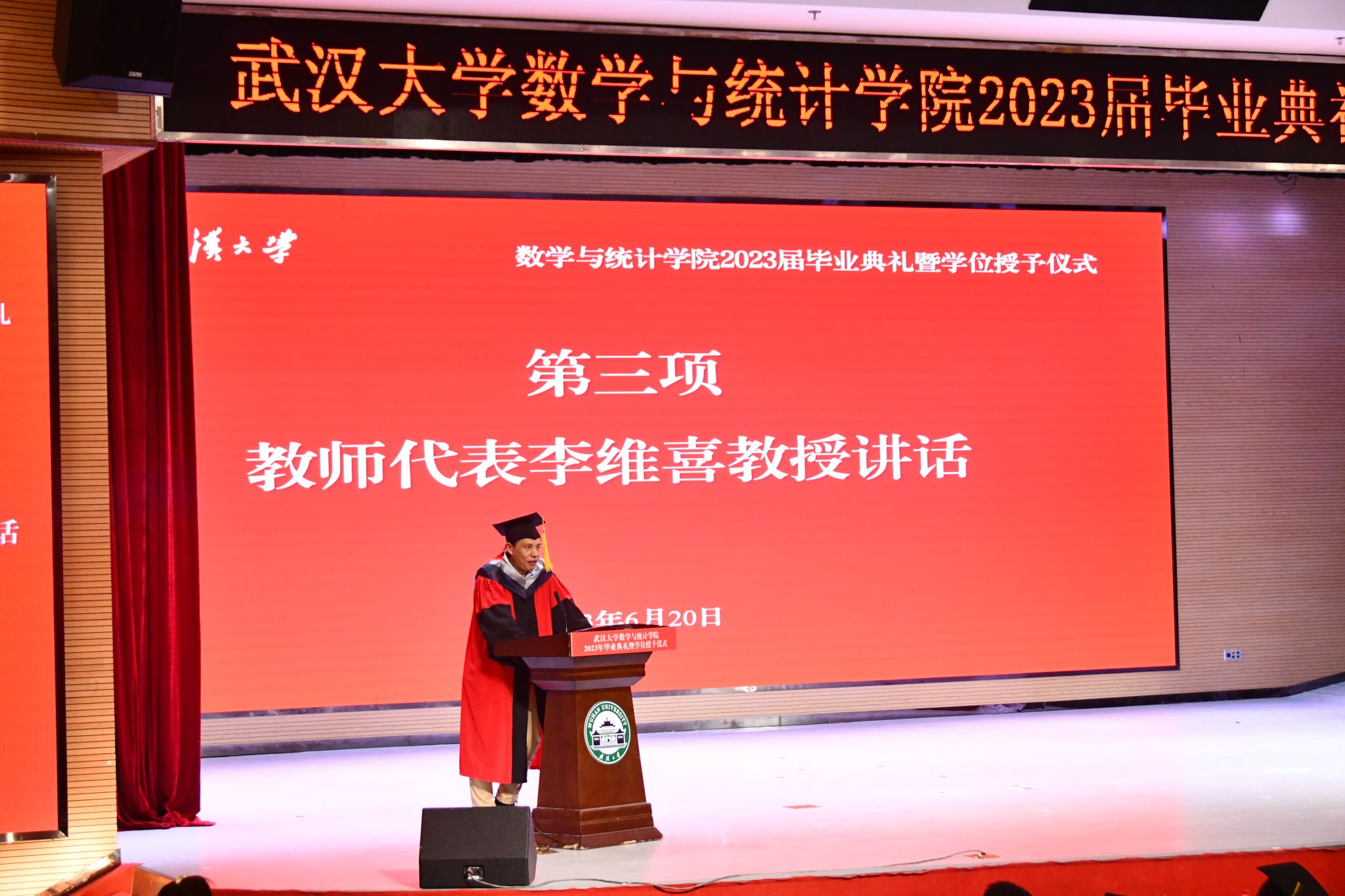 在校的党政领导班子成员、各系负责人、教师代表、班级导师代表出席,2023届全体本科毕业生、毕业研究生以及部分2020届毕业生参加。