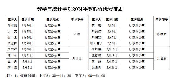 四、行政值班安排