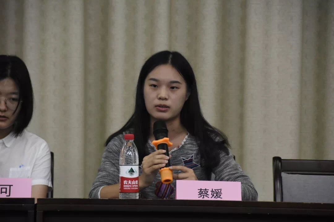 会议伊始,主持人向我们介绍了各位到场嘉宾。随后,八位优秀的高年级同学结合自身经验在学习和生活方面分别给出了建议。林涅同学为学弟学妹们分析了高中学习与大学学习的不同之处,并建议大家不要将视线局限于数学,也要用热情去对待学生工作,将大学生活过的丰富多彩;罗玮晨同学强调了目标与计划在大学学习中的重要性,并建议应该自己主动地去获取多种多样的信息,抓住机会;王可同学向大家分享了自己调整学习方法与状态的方法,并推荐了三本辅导书,使同学们收获颇丰;蔡媛同学建议学弟学妹们多钻研书本,并讲述了自己遇到困难并克服困难的经历,以此告诉大家:无论遇到什么困难都要做好自己,相信一切都会有回报;梁源同学强调了学习的重要性,并提出良好的生活习惯是学习的前提条件;沈丹妮同学同样强调了学习的重要性,也提醒同学们在学业遇到挫折时要管理好自己的情绪;付小文同学分享了自己在学习与学生工作之间协调的经验,并提出:学生工作占用的只是你玩乐的时间,即使事情再多,也不要后悔,因为这是成为你想要成为的人的过程;陈弈霖同学建议同学们要保持良好的心态与严谨的学习态度,做好每天的规划。