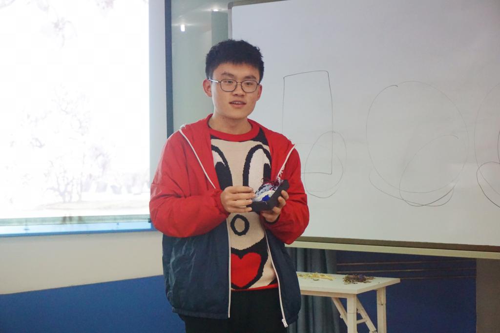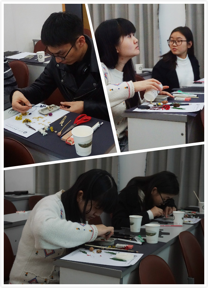 接下来,方圆老师用风趣幽默的语言以及简洁明了的板书展示了香薰蜡片的制作过程,并希望同学们在制作之前能够在脑海中先回忆一段难忘的经历或者一个重要人,以此为灵感构思自己的作品。同学们情绪高涨,纷纷上台挑选自己心仪的花材以及喜欢的香薰精油。然后根据自己想要分享的故事,绘出设计图,随后开始了实际操作。