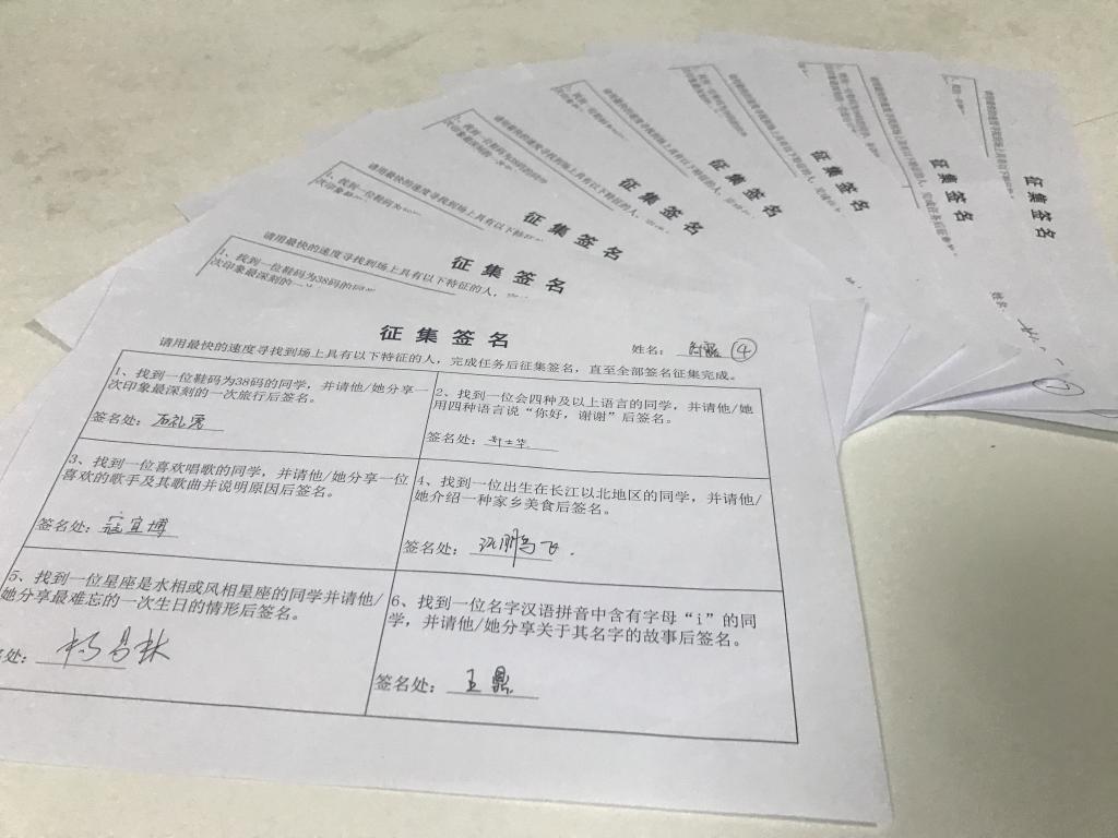 为了让同学们在制作之前能够相互熟悉起来,方老师首先带领大家进行了破冰游戏——“征集签名”。最难忘的旅行、掌握四种语言的大神、喜爱唱歌的人、水瓶座是风相还是水相星座,千奇百怪的问题和关键词让大家在开怀大笑的同时,渐渐熟悉了身边原本陌生的同学。