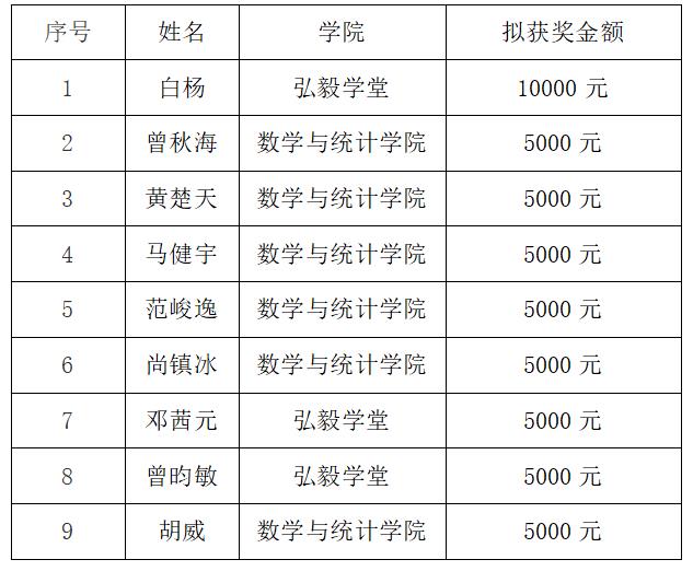 数学专业优秀学生奖学金实施细则》精神,经个人申报、教师推荐、评审委员会评审,拟确定白杨等共9名同学获得糖心视频