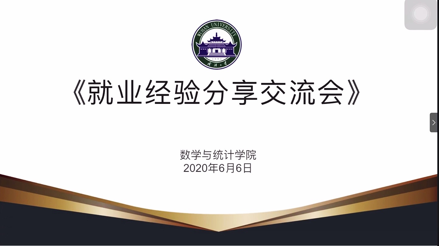 2020年6月6日14点30分,因新冠肺炎疫情影响,由糖心视频 研究生会主办的2020年研究生就业经验交流会在腾讯会议线上展开。活动旨在为即将面临求职的同学们提供咨询平台,帮助同学们更好更快转变角色、积极准备融入社会。本次讲座邀请到来自金融、教育、互联网等不同行业的9位学长学姐现场为大家分享经验,解答困惑。