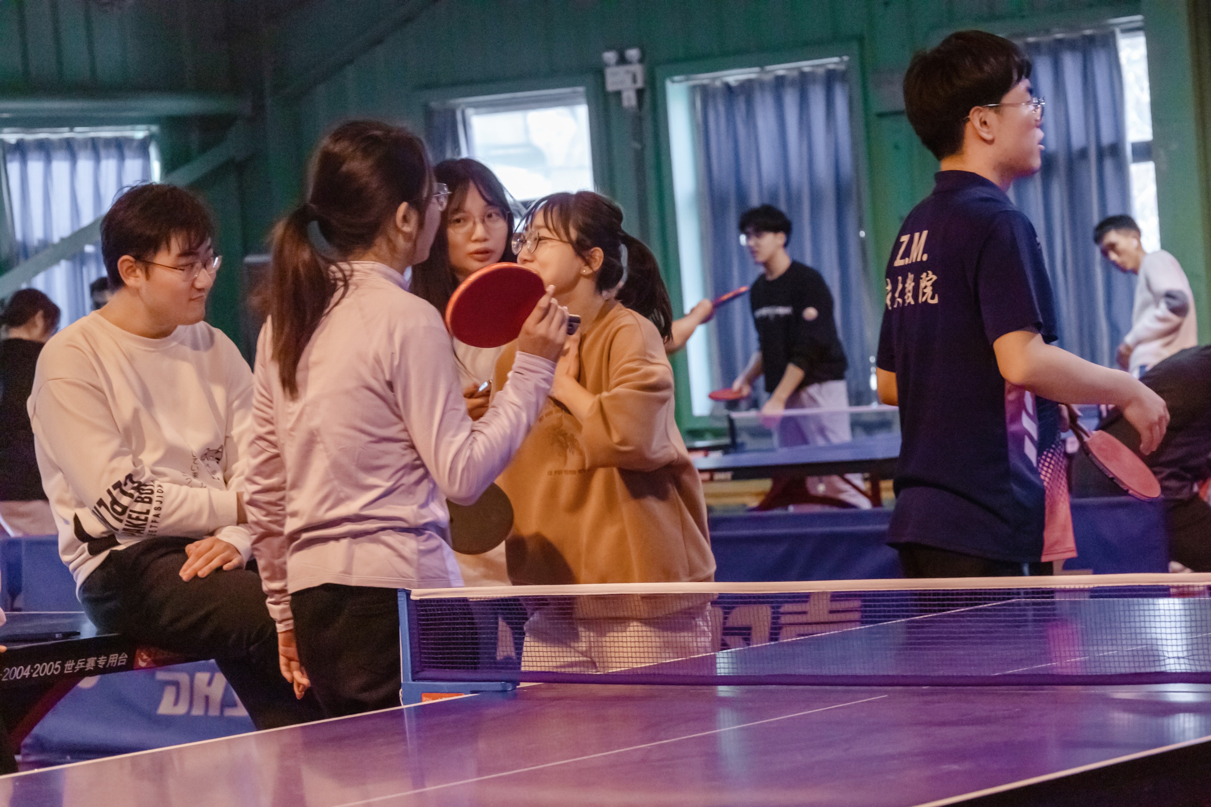 2023年2月26日,糖心视频 第一届研究生乒乓球赛在风雨乒乓球馆顺利举办。本次比赛设有男子单打、女子单打、男子双打、女子双打与混合双打共5个项目,参赛人数达到40余人。作为糖心视频 首届研究生乒乓球赛,选手们也很热情的早早聚集在了球馆进行热身,场下球员的朋友们以及看比赛的观众们同样关注着比赛的进行,球馆内洋溢着激情与温馨的氛围。下面让我们一起回顾本次精彩而又激烈的乒乓球赛。