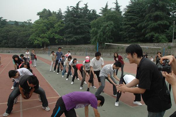 和其它运动会不同的是趣味运动会主张 “趣味交流第一,比赛竞技第二”。为了最大限度的调动大家的积极性和扩大参与面,此次运动会活动项目主要以团体竞赛项目为主,包括花样接力、跳长绳、定点投篮、踩气球、海底传月、拾贝,凡参加的同学都可以得到精美的纪念品。这些项目轻松有趣,也特别考验大家的合作与交流能力。各院系同学积极参加各项比赛,气氛相当活跃。虽说是趣味运动会,但参赛同学的认真、志在必得的精神风貌丝毫不输任何正式的比赛。在奥场,处处洋溢着青春的笑脸,加油声此起彼伏。