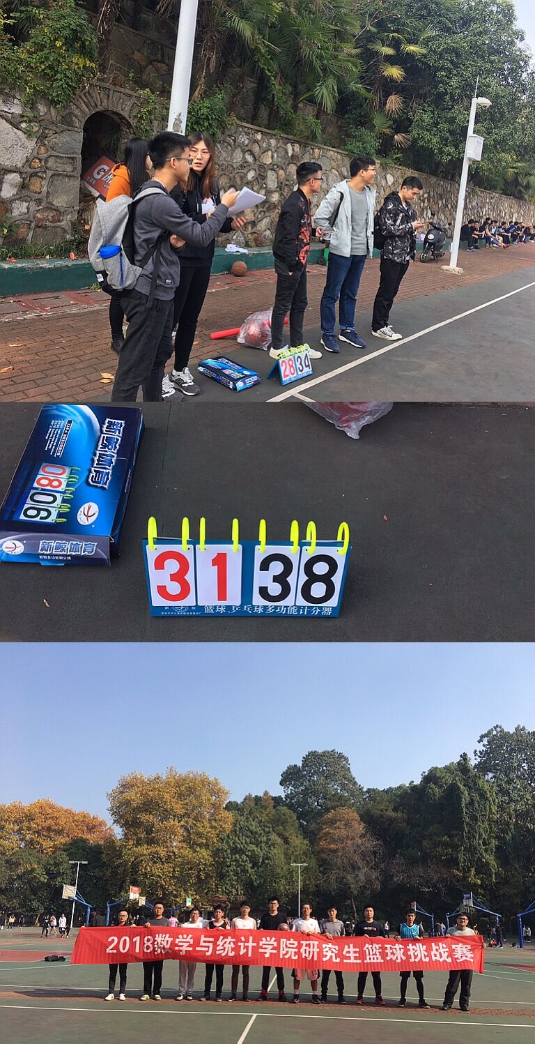 研究生篮球联赛于梅园操场火热进行中。本次联赛自10月17日起,由18基统联队,18应统队,18打铁队,17级联队等多支队伍参加。10月中旬至11月,四支队伍先后比拼了六场友谊赛,最终进入决赛的是17级联队和18基统联队。此次篮球赛充分展现了数院人勇往直前、积极向上的态度,彰显出团结友爱,热爱生活的态度。该篮球赛还设有女子投篮项目,提高了全院同学积极参与性。