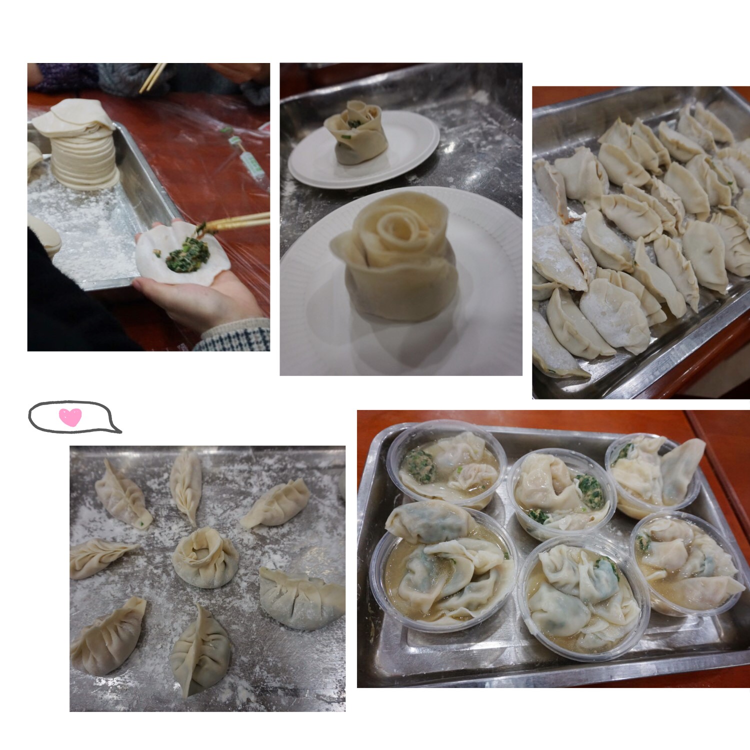 吃完饺子,最后一个环节最美饺子比赛在温馨的氛围中拉开序幕,每组队员都拿出自己的看家本领,玫瑰形状、元宝形状、三角形状等等,各组集思广益,并推选出心灵手巧的队员将成品展现。