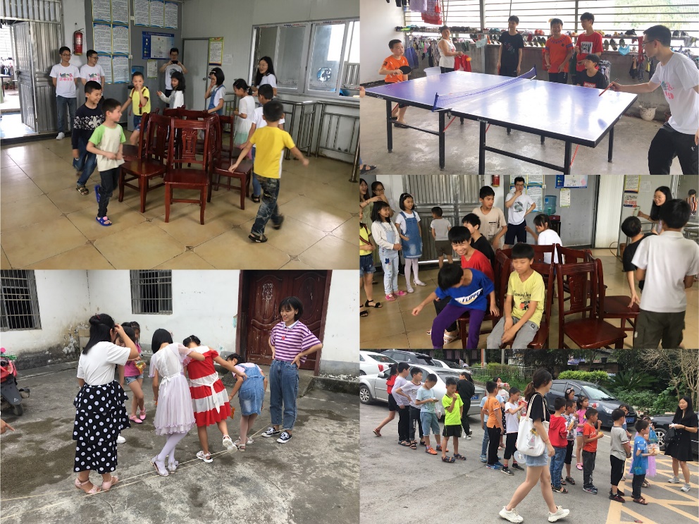 接下来几天,实践队和小朋友们一起开展了课外游戏和户外活动:从充满童真童趣的萝卜蹲、击鼓传花、你画我猜、猜数字、摸瞎子、跳绳等课外游戏,到一起去镇子上观看篮球赛,去河边烧烤等户外活动。丰富多彩的活动不仅使小朋友们收获了快乐也拉进了队员们与小朋友们之间的距离,增进了彼此间的情感。
