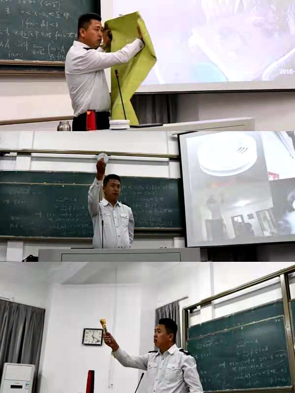 随后,于教官向同学们讲解了生活中常用的防火知识,并普及了部分家用灭火工具的用法。在短片中,圣诞树上一个小小的彩灯引发的火灾在48秒内烧毁了整个屋子,而这本是一个烟雾报警器就能阻止的悲剧。灭火救人固然是消防官兵们的神圣职责,但他们也不是无所不能的神仙,我们只有做到有备方能无患。家中常备灭火毯、家用灭火器等用具能助我们在危急关头化险为夷;车载灭火器、应急自救手电也能让我们在意外来临时不至于束手无策。桩桩惨案是血的教训,没有如果,只有结果。