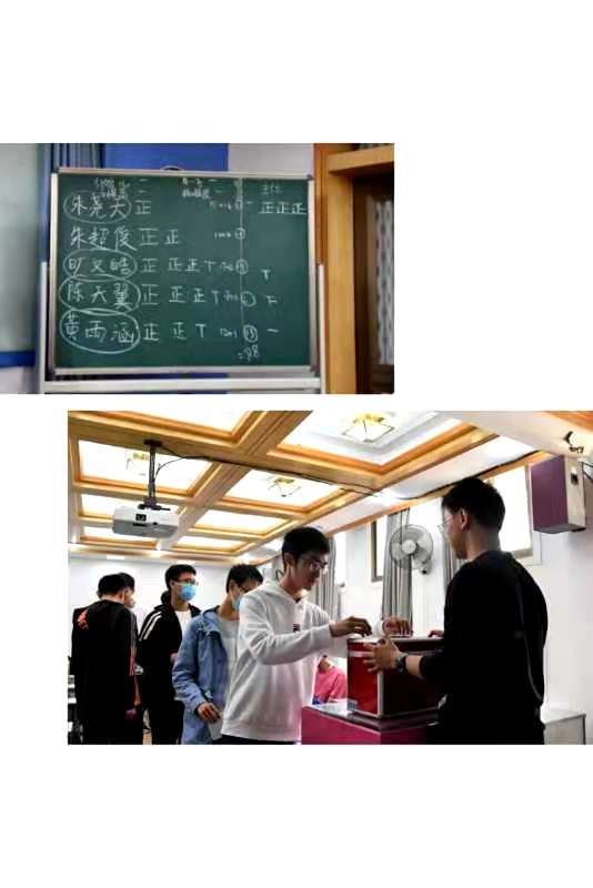在五位候选人答辩过后,监票人吴沛雷组织全体投票人员进行现场匿名投票,张艺濒负责计票。大家综合各位候选人的能力选择了自己心目中合适的人选。经过紧张的唱票和计票环节,吴沛雷宣布了选举结果:朱尧天拟任2020级本科生年级自治会主任,旷文皓、陈天翼、黄雨涵拟任副主任。